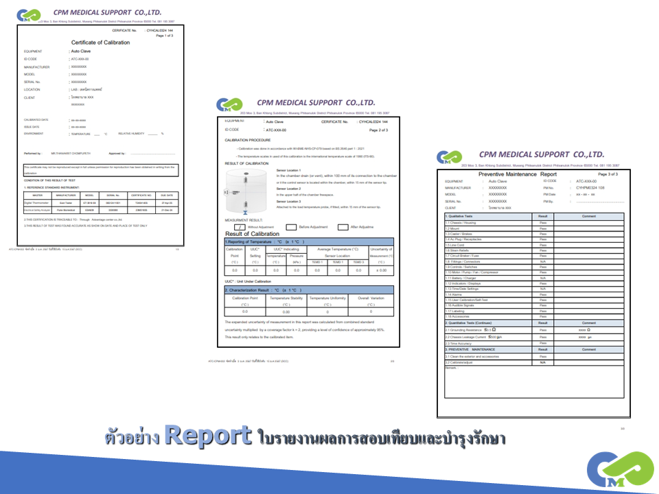 บริษัท ซีพีเอ็ม เมดิคอล ซัพพอร์ต จำกัด บริการทดสอบ/สอบเทียบเพื่อให้แน่ใจว่าเครื่องมือวัดที่จะนำไปใช้งานหรือใช้งานอยู่แล้วมีค่าที่แม่นยำและเชื่อถือได้ ปลอดภัยทั้งต่อผู้มารับบริการ และสร้างความมั่นใจต่อผู้ใช้งาน โดยการสอบเทียบจะแสดงความสัมพันธ์ระหว่างค่าที่วัดได้และค่าของเครื่องมาตรฐานจากห้องแล็ป ด้วยเครื่องมือสอบเทียบที่ได้มาตรฐาน ISO/IEC 17025 เพื่อรับรองคุณภาพ และประสิทธิภาพของเครื่องมือแพทย์ พร้อมทั้งความถูกต้องของเครื่องมือที่ใช้ทางการแพทย์ โดยบริการทดสอบ/สอบเทียบ เช่น